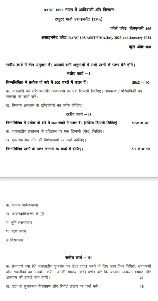 This is a Core Course for students who have opted program BSCANH under IGNOU BANC 105 Tribes and Peasants in India 2023-2024 With CBCS Pattern.