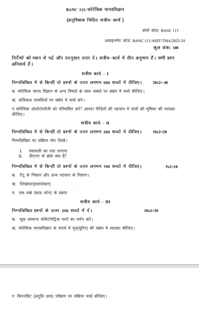 This is a Core Course for students who have opted program BSCANH under IGNOU BANC 113 Forensic Anthropology 2023-2024 With CBCS Pattern.