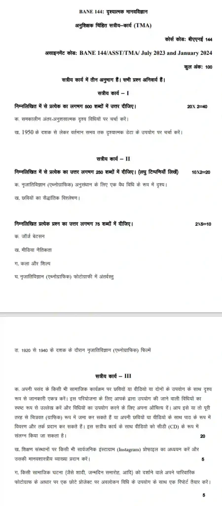 This is a Core Course for students who have opted program BSCANH under IGNOU BANE 144 Visual Anthropology 2023-2024 With CBCS Pattern.