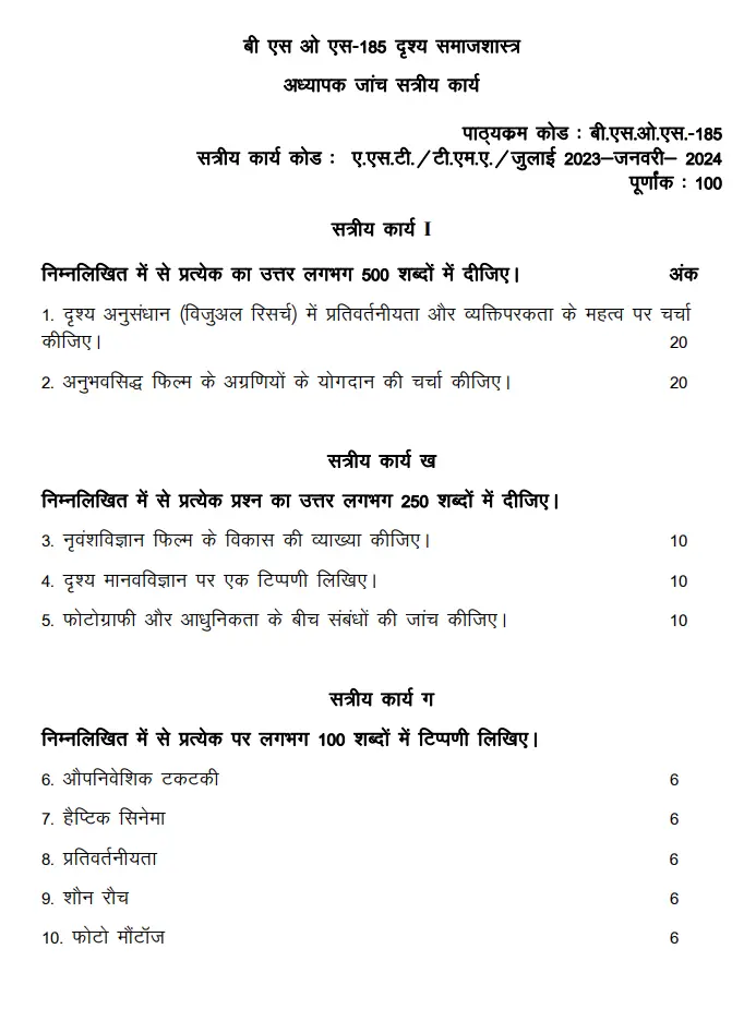 IGNOU BPAS 186 Assignment Question in Hindi 2023-2024
