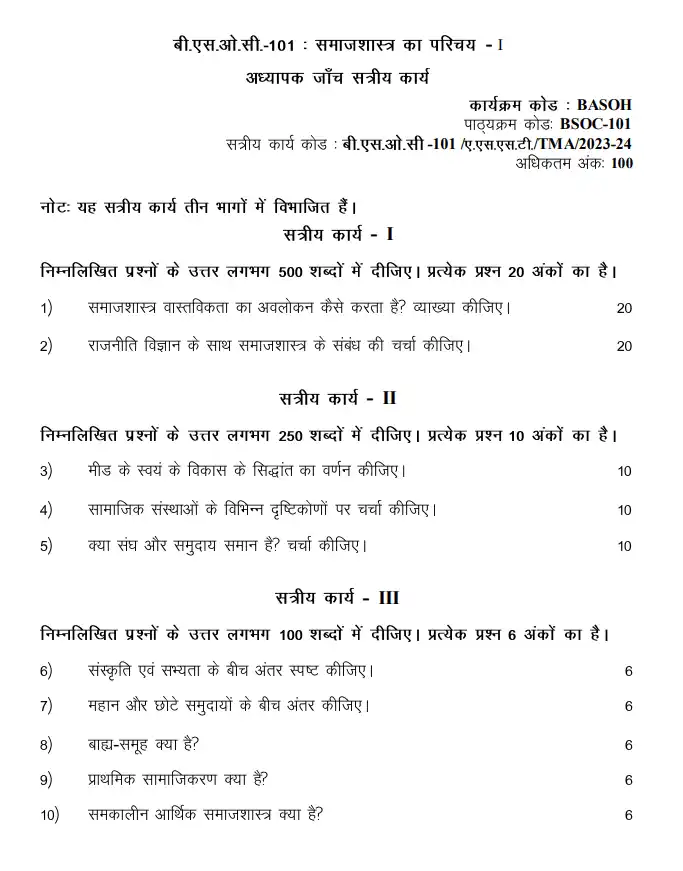 Download IGNOU BSOC 101 Assignment 2023-2024