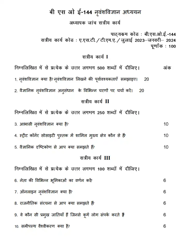 BSOE 144 नृवंशविज्ञान अध्ययन Solved Assignment 2023-2024